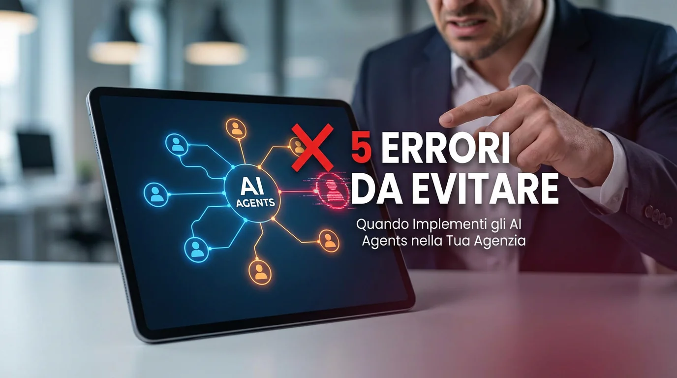 L'errore più grave nell'implementazione di AI Agents è trattarli come "magia" autonoma invece che come collaboratori digitali che necessitano di istruzioni precise (SOP) e supervisione umana (Human-in-the-Loop). Molte agenzie falliscono perché tentano di automatizzare processi interi e complessi fin dal primo giorno, ignorando la necessità di una Knowledge Base strutturata e trascurando le implicazioni di privacy dei dati dei clienti. Per avere successo, bisogna iniziare con task specifici a basso rischio, stabilire KPI chiari per il ROI e mantenere sempre un controllo qualità senior sull'output finale prima che raggiunga il cliente.